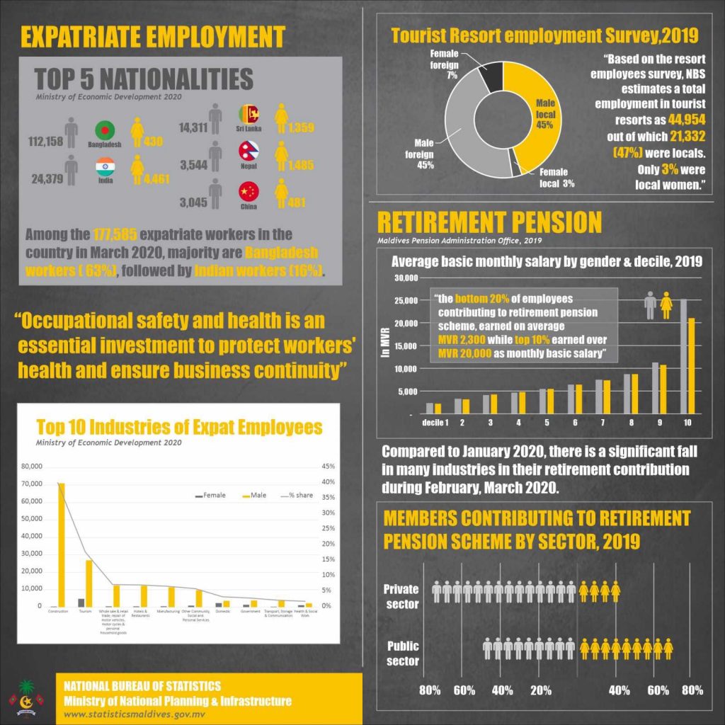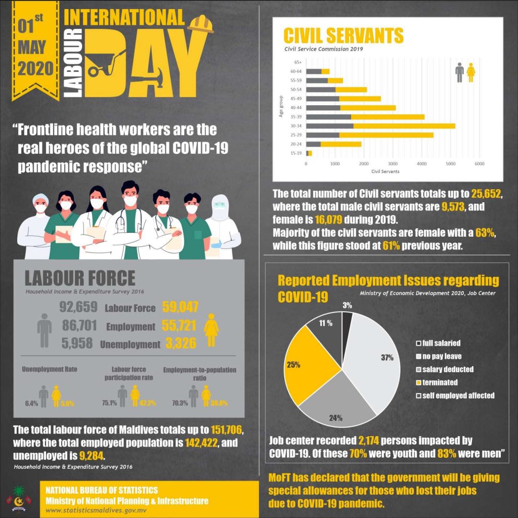 In the celebration of International Labour Day 2020, National Bureau of Statistics has revealed the statistics of the labour force in the Maldives.