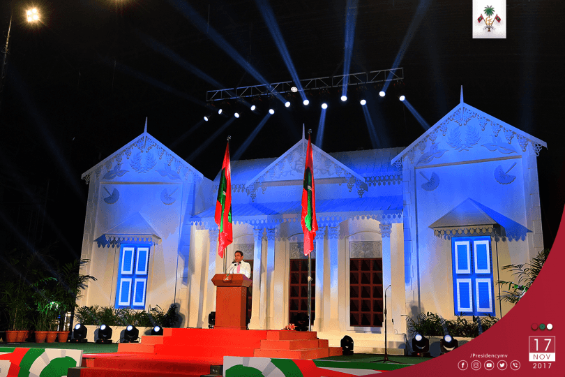 President Abdulla Yameen Abdul Gayoom has stated that the administration’s policy is to recognise the invaluable services provided to the nation by members of the public, maintain peace, continuous progress and provide opportunities desired by the people of the Maldives. The President made this statement while speaking at the event held this evening, to celebrate four years of this administration’s success. First Lady Fathimath Ibrahim accompanied the President at the function.