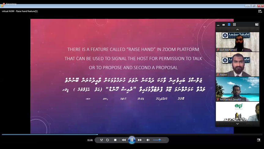 The only fully-fledged Shari’ah compliant insurance service provider, Amãna Takaful Maldives has conducted the ninth AGM on a virtual platform for the first time. Given the trying conditions arising from the global pandemic, Amãna Takaful decided to host this historical AGM virtually adhering to social distancing guidelines set out by the health authorities.