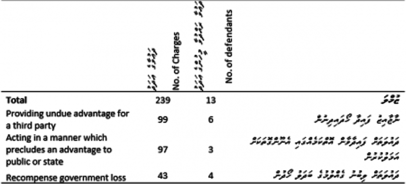 The other cases sent for prosecution in the third quarter meanwhile involved corruption at the Maldives Ports Limited as well as the utilities State Electricity Company and Fenaka Corporation.