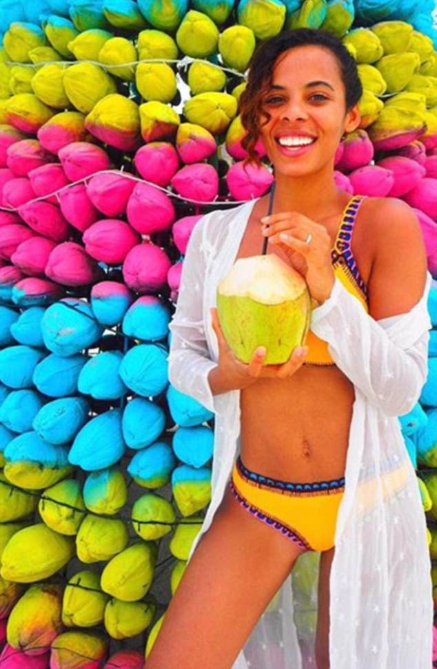 Feeling fruity: Rochelle Humes stunned her followers once again as she rang in 2018 in style – while wearing a bikini during a romantic festive break in the Maldives