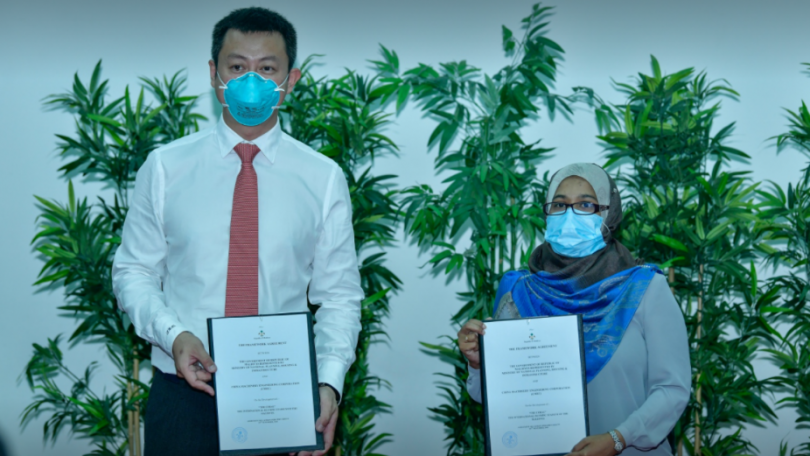 The signing ceremony took place at Dhivehi Raajjeyge Addu’s Senaco Maalan earlier today. On behalf of the Ministry, the Director-General of the Ministry of National Planning. Housing and Infrastructure, Fathimath Shana Faarooq and CMEC Chief Representative, Li Xiado signed on behalf of the company.