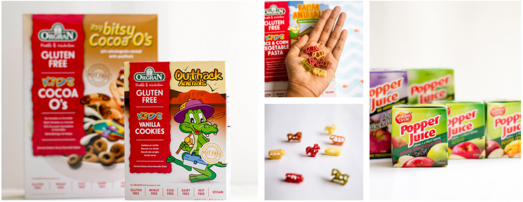 The kids-friendly selections include fruit juices, flavoured milk, nutritious pasta and cereals from Orgran, Pauls, and Sanitarium.