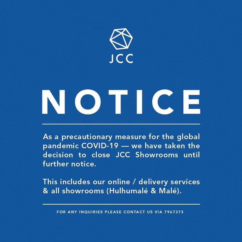 All showrooms of JCC including the Male’ and Hulhumale’ will be temporarily closed.