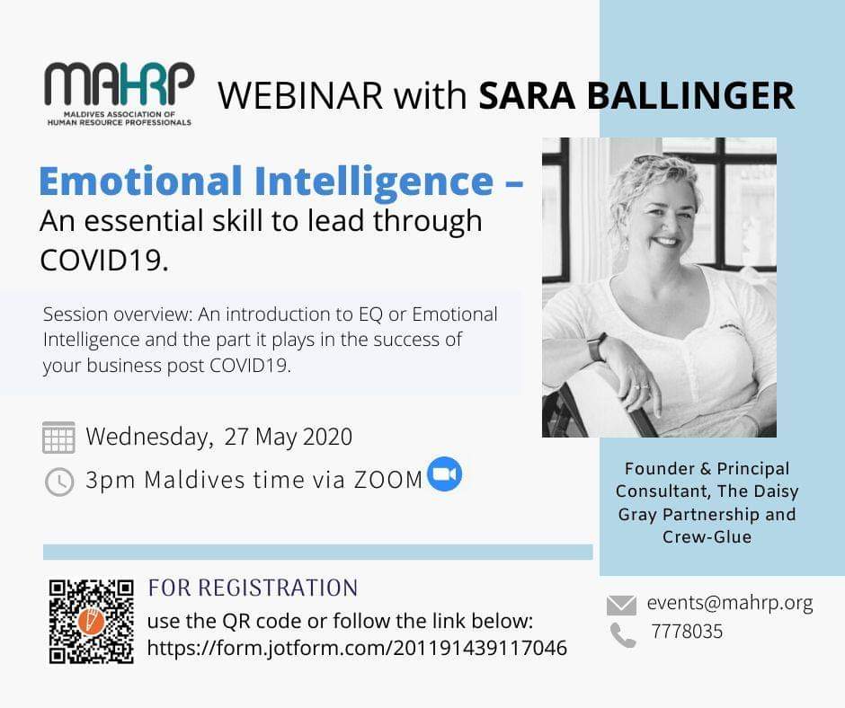 A second webinar on May 27 will see Sara Ballinger, a world-renowned people development coach, speak on the theme, “Emotional Intelligence – An essential skill to lead through Covid-19.”