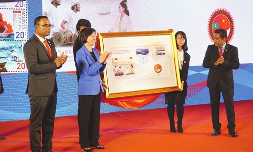 Chinese postal stamps and a postcard that symbolize the 45th anniversary were revealed at the event. The Vice Chairwoman of the Standing Committee of China’s National People’s Congress Shen Yueyue and the Maldives Ambassador to China Mohamed Faisal also attended the event and gave a welcome speech.