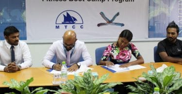 People pictured in front of the Family Court in Male. PHOTO/SOCIAL MEDIA