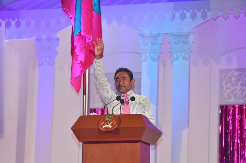 Yameen challenged “political leaders who say they do not see development” at a November 17 rally marking the four-year anniversary of his government.