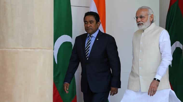 Prime Minister Narendra Modi with Maldives President Abdulla Yameen Abdul Gayoom (Express photo/Renuka Puri/File)