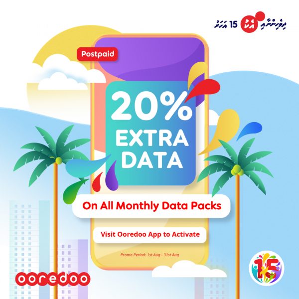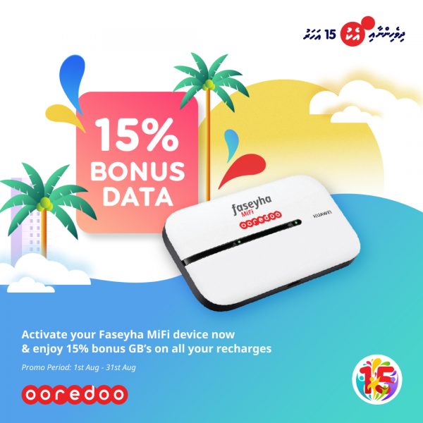 As part of Ooredoo Maldives 15th Anniversary celebration and to thank its customers for the continuous support throughout the 15 years, Ooredoo has launched an exciting anniversary promotion offering up to 50% bonus data to its Prepaid customers, 20% Extra Data on all Postpaid monthly data packs, 15% bonus data on all recharges for new Faseyha Mini customers, and 15% discount on IDD rates for all SAARC nations.