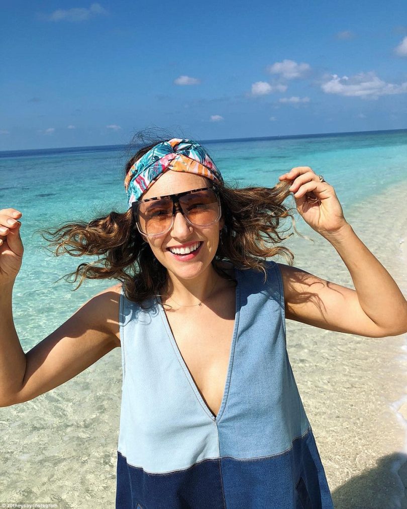 ‘Probably the worst thing about being a travel writer is being invited to stay at places like Soneva Fushi in the Maldives so you can write about them,’ she captioned the photo.