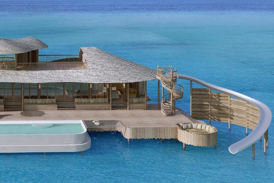 The private pool and slide of Soneva Fushi’s new overwater villas. SONEVA