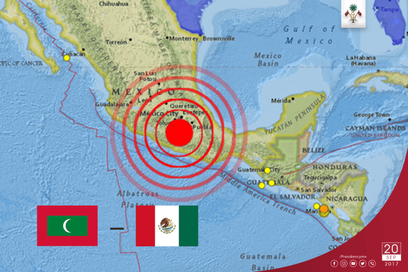 President Abdulla Yameen Abdul Gayoom has sent a message of sympathy to the President of Mexico, His Excellency Enrique Peña Nieto, following the earthquake that hit Mexico.