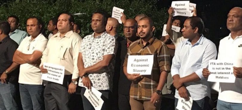 Former president Mohamed Nasheed slammed the FTA, saying it was bad for the region and undermined the country’s sovereignty.