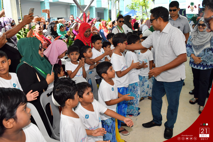 President Abdulla Yameen Abdul Gayoom has visited the “Hithaanee Ufaa” camp organized by Sadhaqaath Foundation being held in Rehendi School, Hulhumalé. The camp is organized to perform circumcisions of boys during the school holidays.