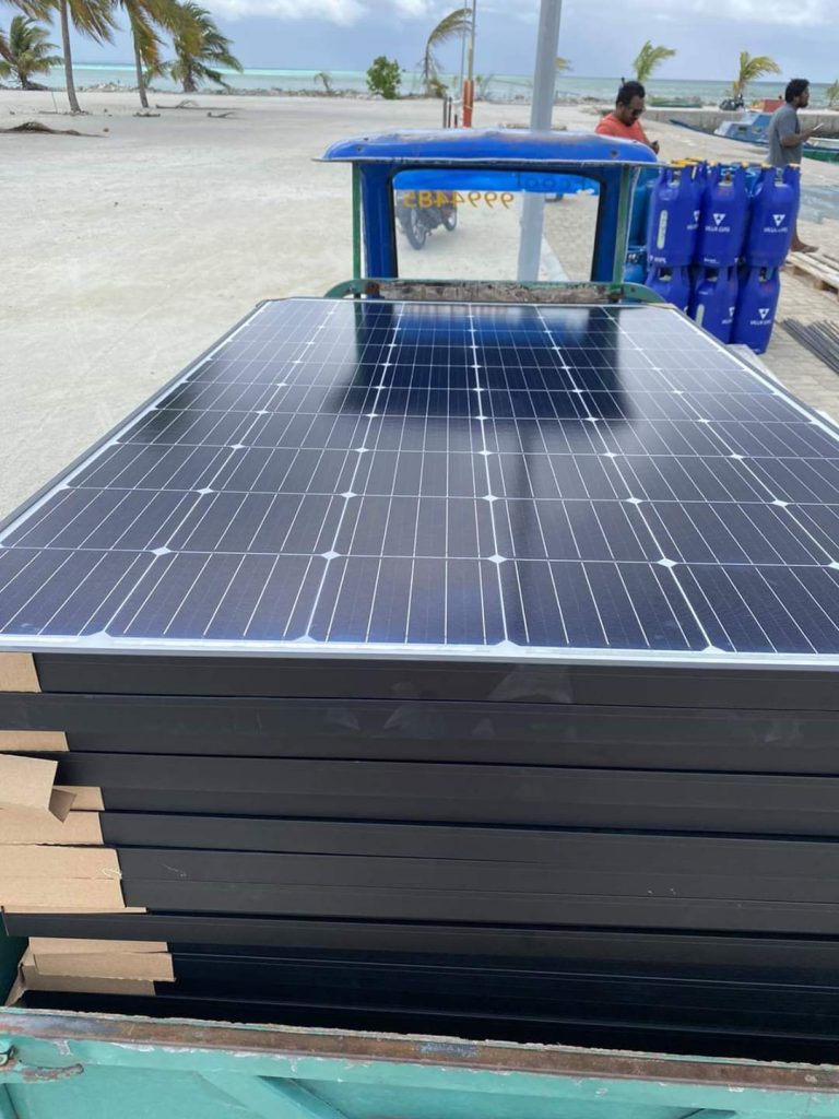 The material needed for the solar charging system has been shipped to Vaadhoo, and installation work is expected to begin over the next one-month period.