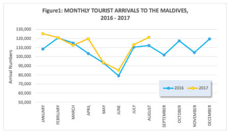 According to the tourism ministry, 892,025 tourists visited the Maldives between January and August this year, up from 842,635 for the same period in 2016.
