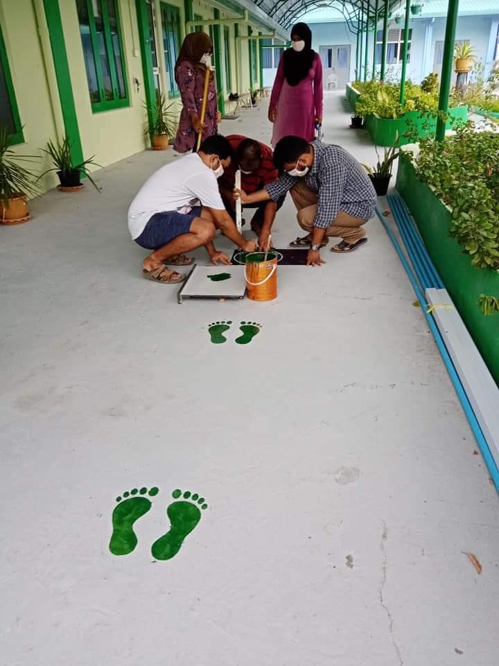 Pictures were shared on social media by the Ministry, which illustrated social distancing marks which were drawn inside of the school and marks which have been drawn inside of the classrooms for the students to maintain social distancing practices in a closed space.
