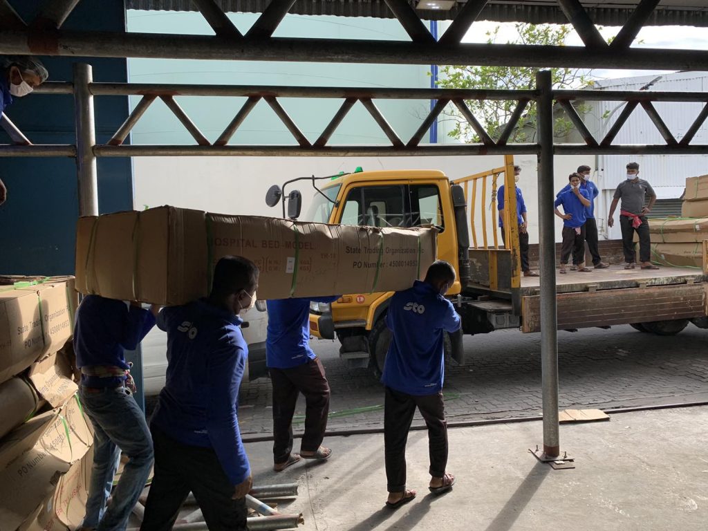 Medical equipment and consumables are loaded for regional islands’ COVID-19 facilities, said state-owned company State Trading Organization (STO).