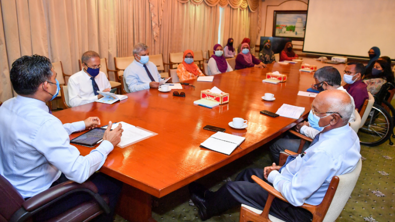 The meeting today was joined by the Minister of Health, Ahmed Naseem, the Minister of Higher Education, Dr Ibrahim Hassan, Special Advisor on Social Policy at the President’s Office, Dr Mustafa Lutfy, and Undersecretaries at the President’s Office, Aishath Nazhath and Dr Abdul Malik. Other stakeholders present the meeting included the Registrar of the MNMC and high-ranking officials from Maldives National University (MNU) and MNMC.