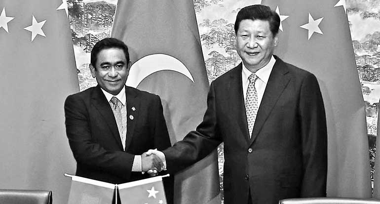 Very significantly, Yameen added that the Maldives “looks forward to seeing China play a bigger role in international affairs and is ready to enhance coordination with China in this area”.